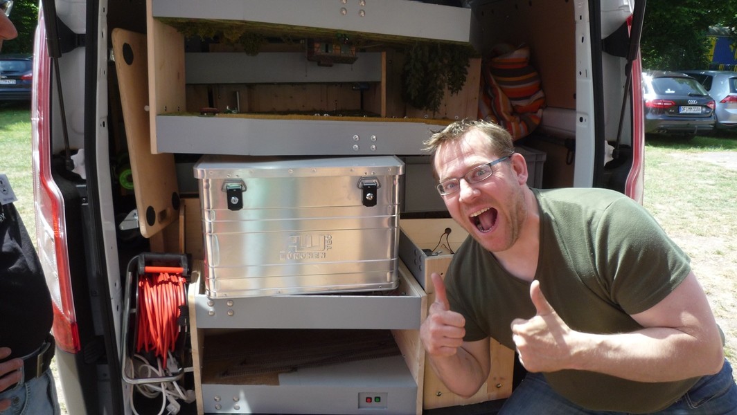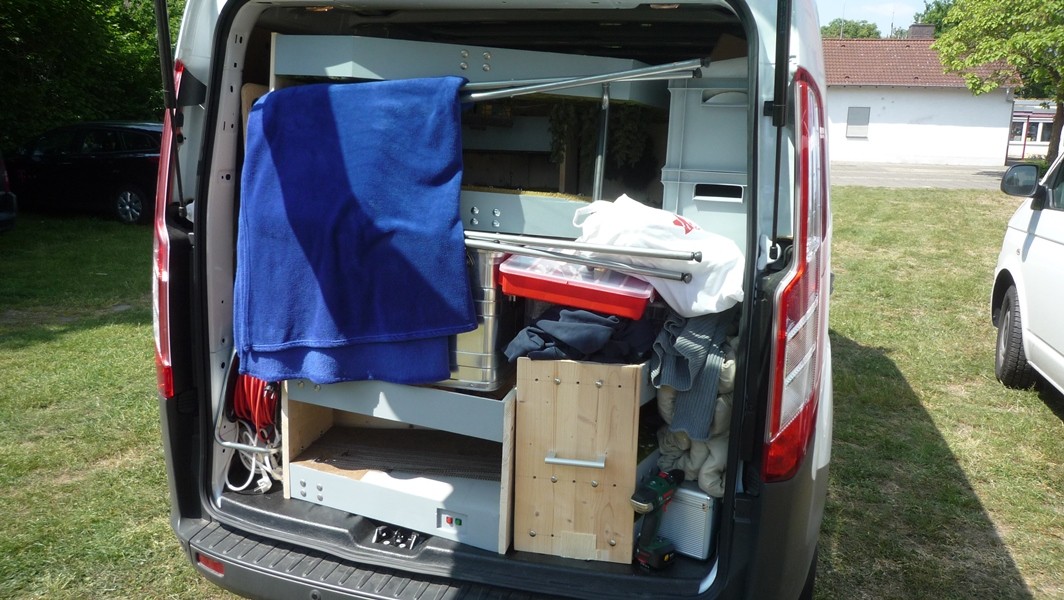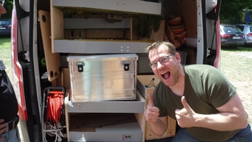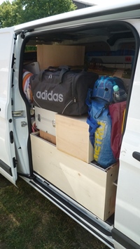 Der Transporter mit Lödderitz und den Schmalspurmodulen ist voll bis unters Dach.