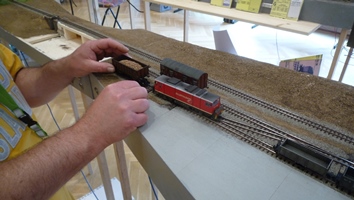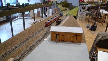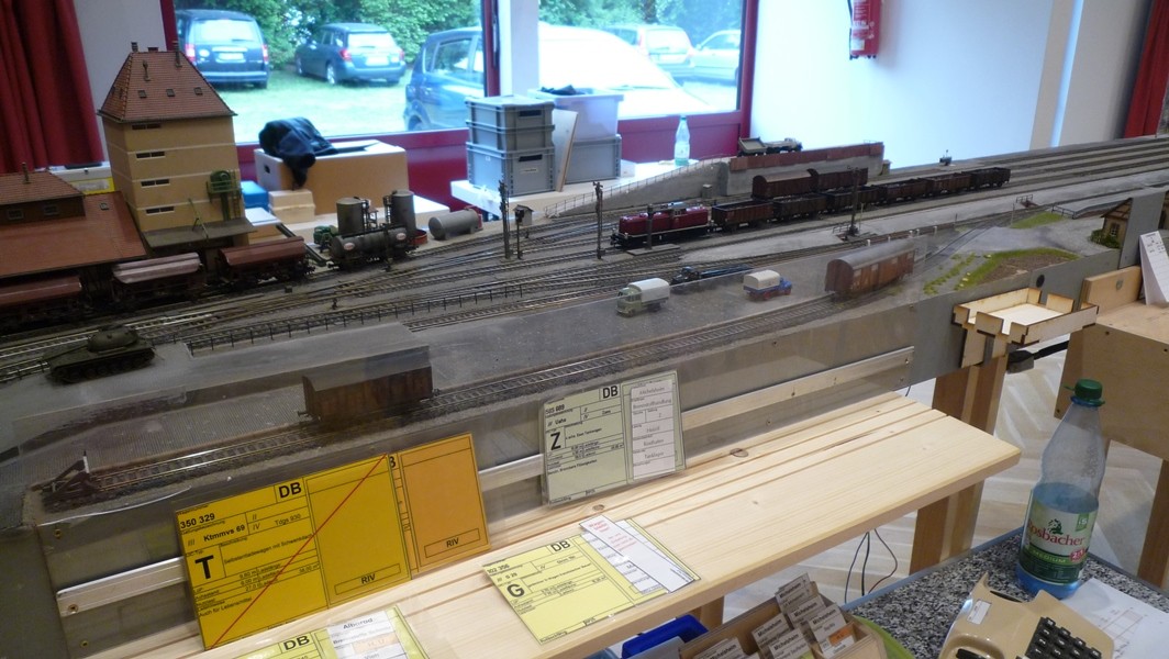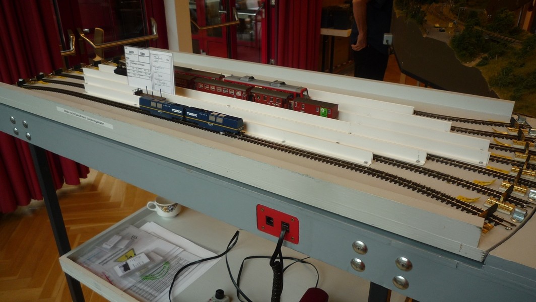 Beim Aufbau haben wir kurz improvisiert und einen weiteren Fiddle-Yard an das dritte Anschlussgleis angebaut
