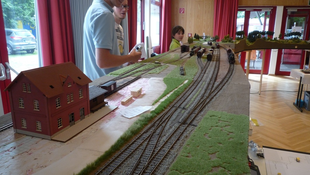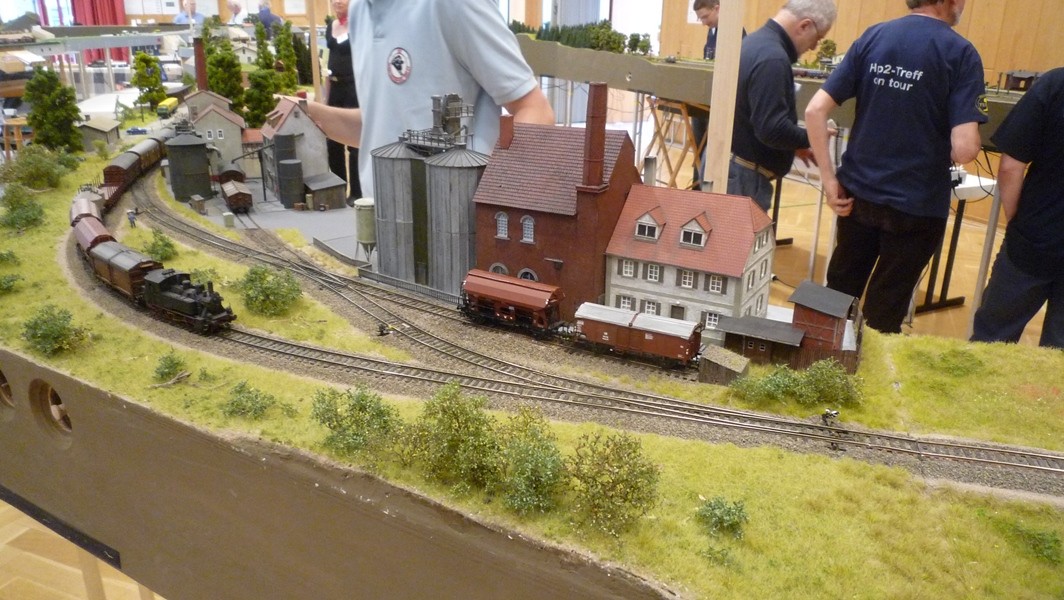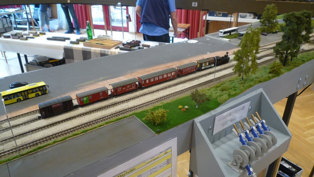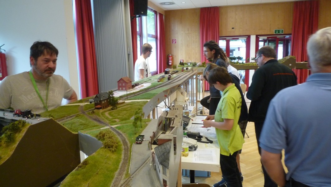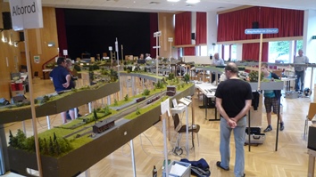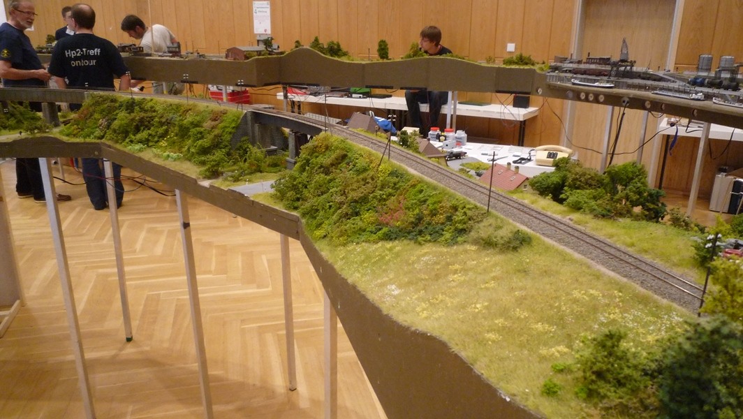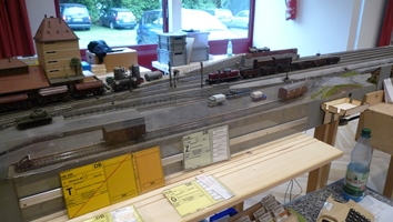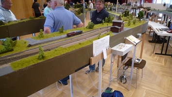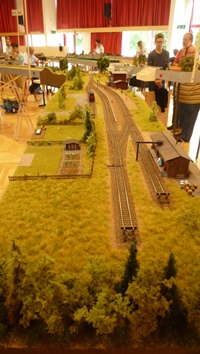 Modultreffen statt. Aufgebaut war eine eingleisige Hauptbahn mit zwei abzweigenden Nebenbahnen sowie einer abzweigenden H0e
