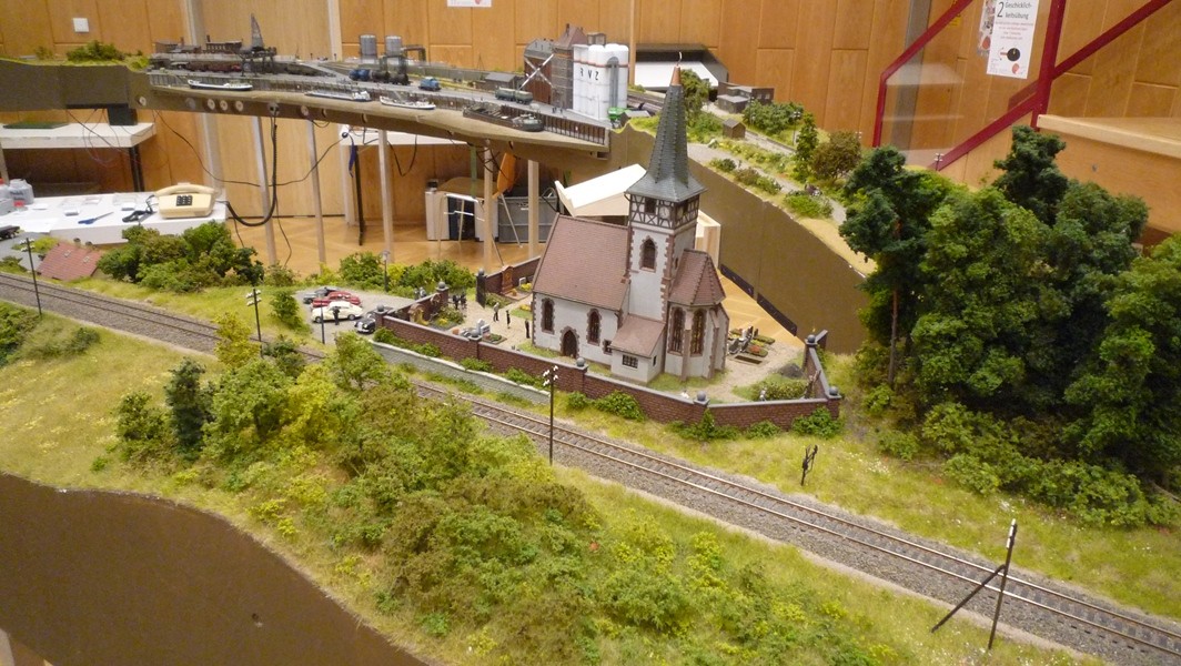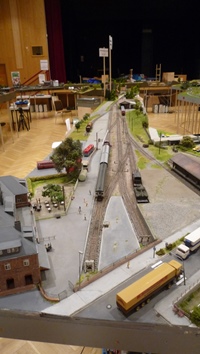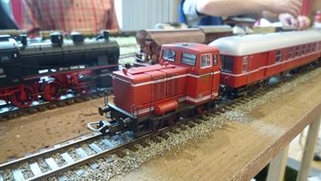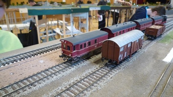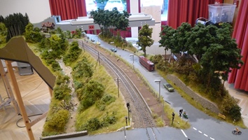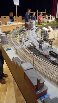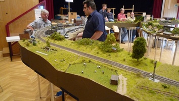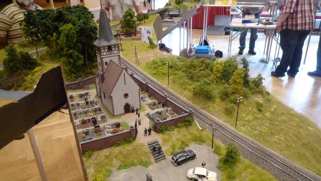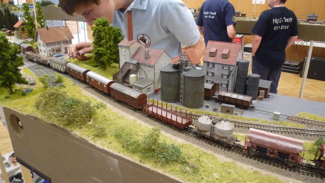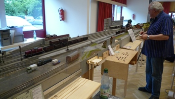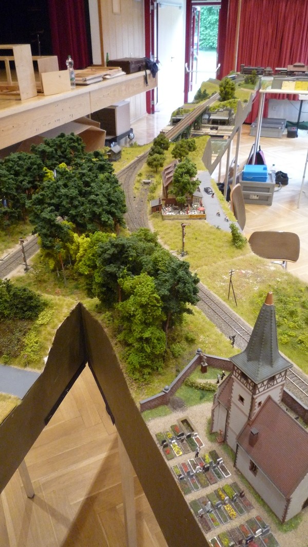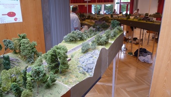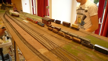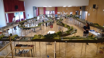 Modultreffen statt. Aufgebaut war eine eingleisige Hauptbahn mit zwei abzweigenden Nebenbahnen sowie einer abzweigenden H0e