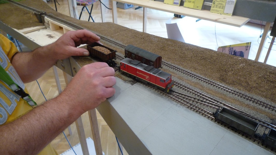 Schmalspurbahn. Ca. 90 % der Schmalspurmodule waren von Micha und mir. Etwa 50 % der Module waren vom