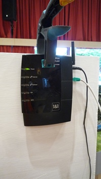 Hier hängt der WLAN Router für die drahtlose Anbindung der Smartphone Handregler. In Rodgau habe ich das erste