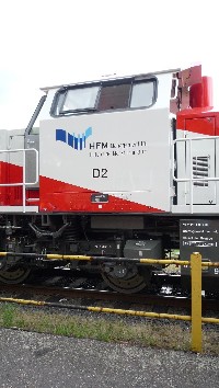 Dann fuhr auch mal wieder der Pendelzug zum anderen Hafengelände los. Damit der Zug wendezugfähig sein konnte, war vorne die nagelneue MaK G 1000 BB der Hafenbahn angekoppelt.