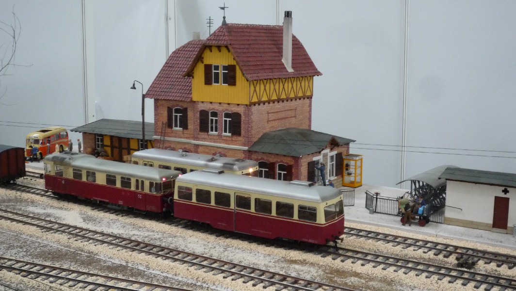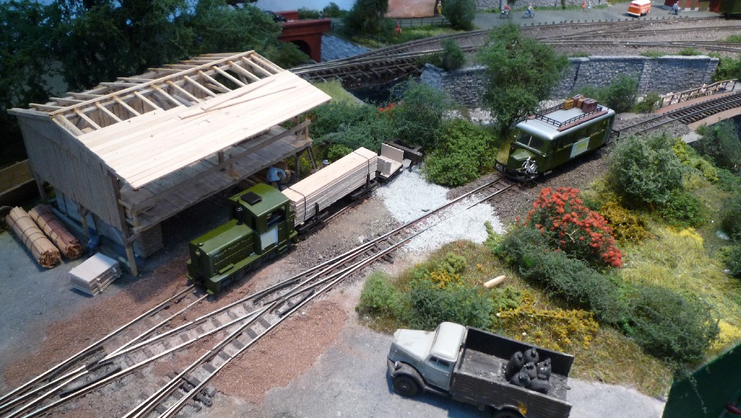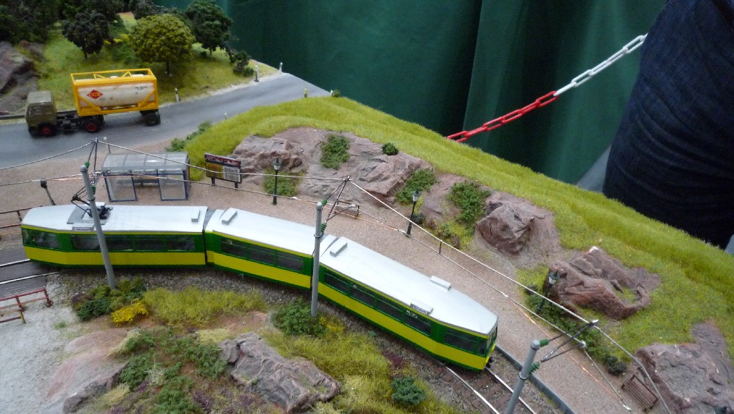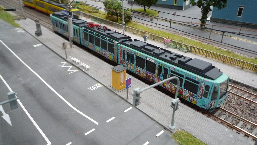 Als mittlerweile großer Fan der Karlsruher Verkehrsbetriebe war diese Anlage mit den zahlreichen Fahrzeugeigenbauten für mich natürlich sehr interessant. Nachgebaut ist die Albtalbahn mit Bahnhof Bad Herrenalb bis zum Abzweig Busenbach.