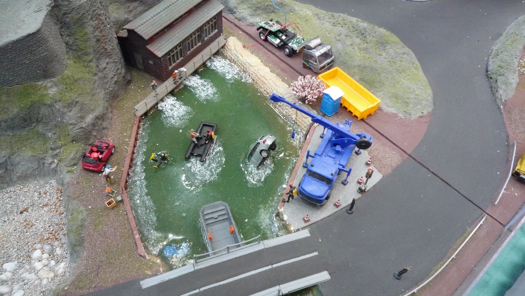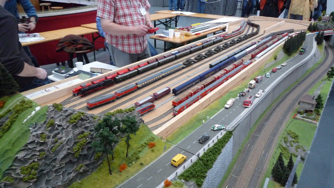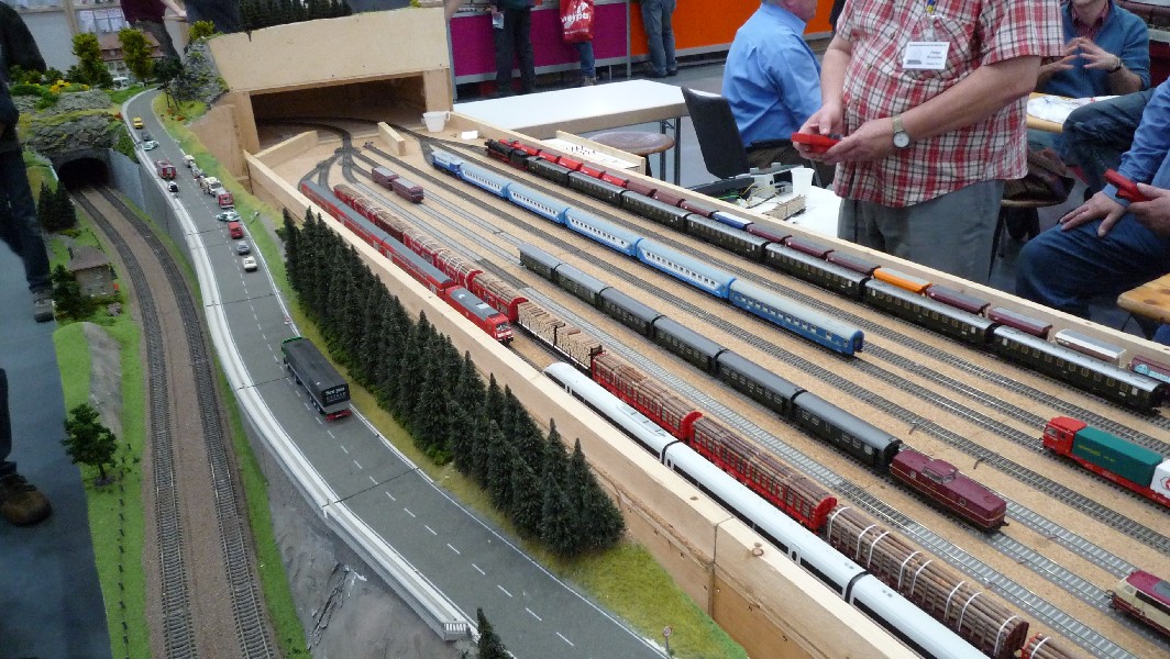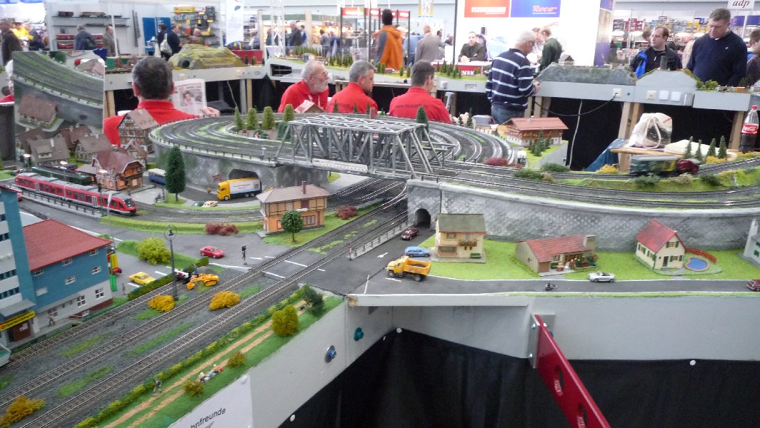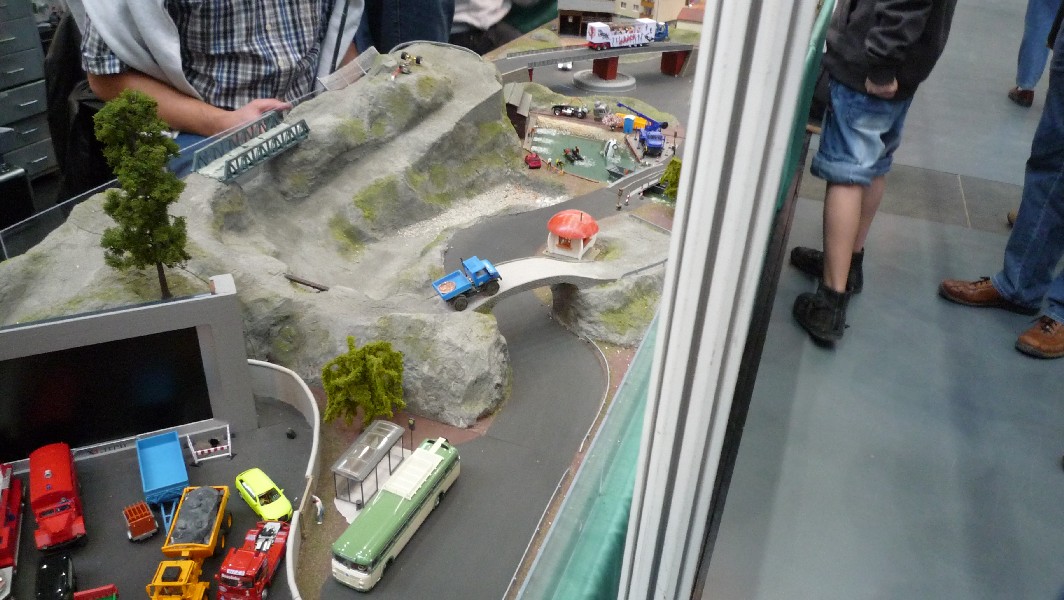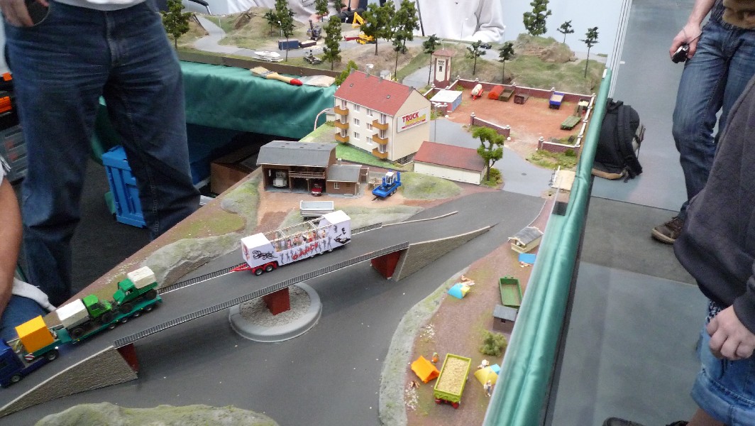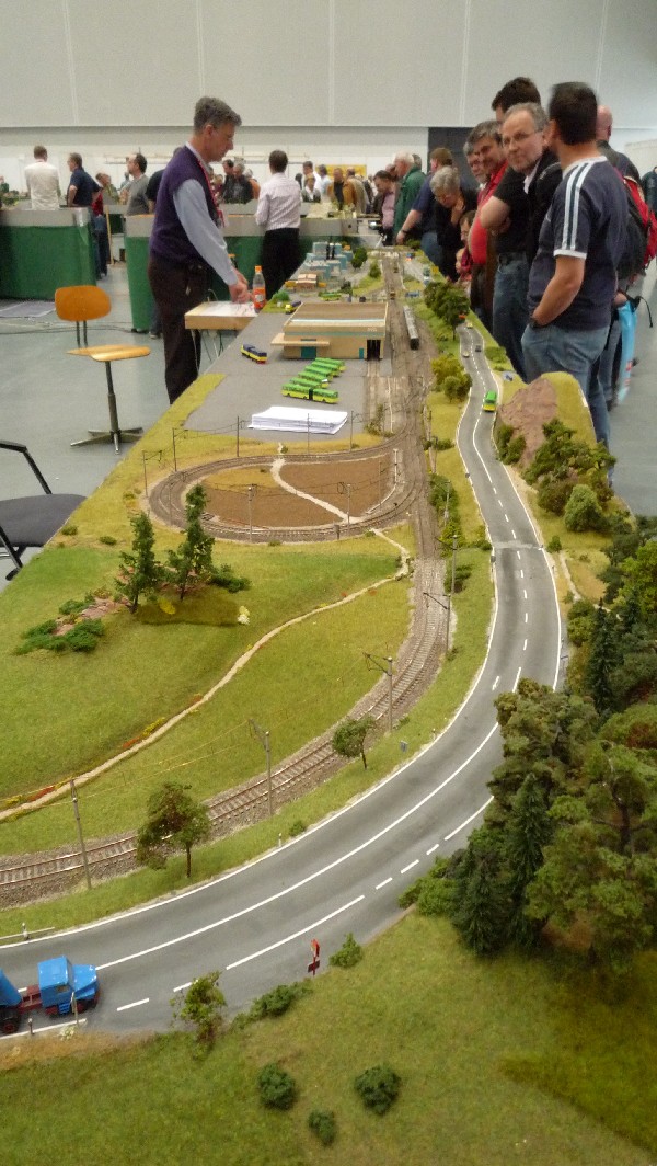 Für Spur 1 Bahner ist diese Anlage sicherlich am beeindruckendsten. Zahlreiche Fahrzeuge (teilweise Eigenbau bzw. Umlackierungen) fahren hier auf dem nahezu größten Stand der ganzen Halle.