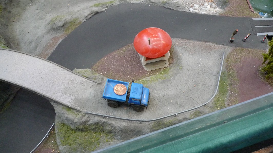 Man sieht den kleinen Spur N RC Truck einfahren.