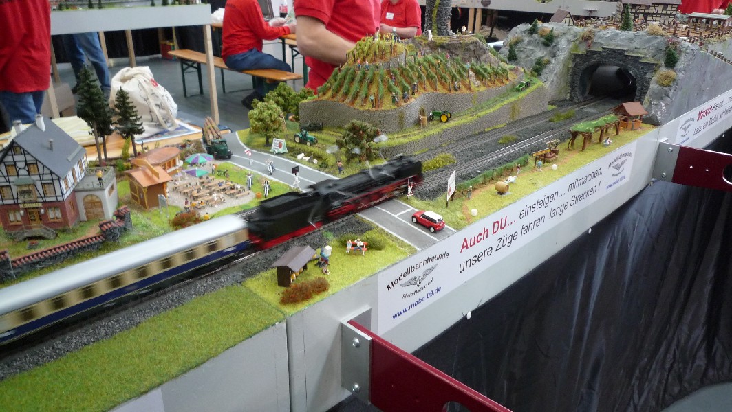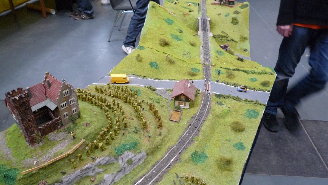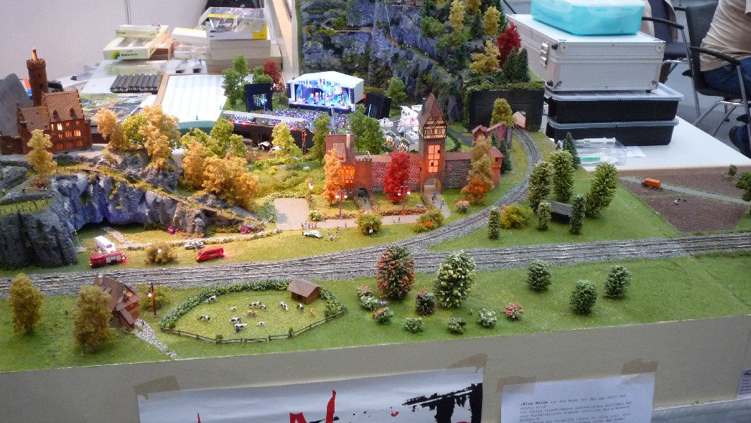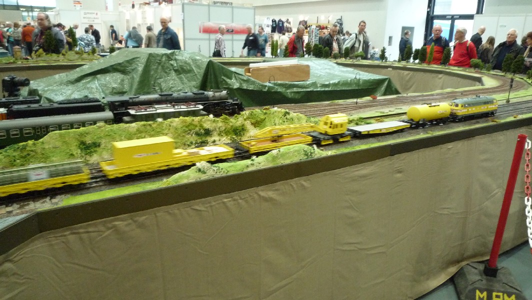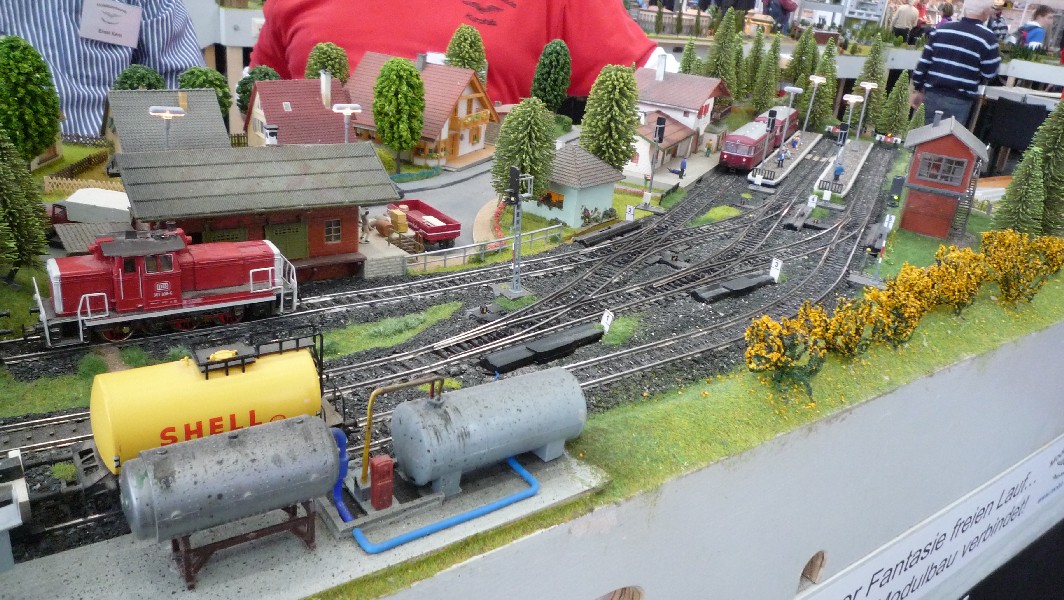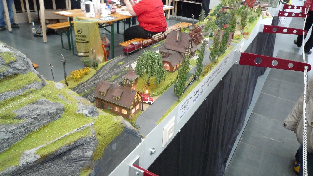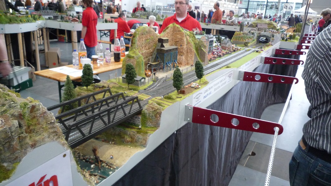 In diesem Abschnitt stelle ich so gut wie alle vertretenen Schausteller vor. Darunter fallen also Clubs oder Privatpersonen, die ihre Modellbahn- oder Modellbauanlagen vorstellen. Ich lasse die Bilder größtenteils unkommentiert, da ich über die jeweiligen Anlagen auch nicht mehr weiß, als man auf den Bildern sieht. Und warum sollte ich beschreiben, was man auf dem Bild sieht, wenn man es sich ja ansehen kann?