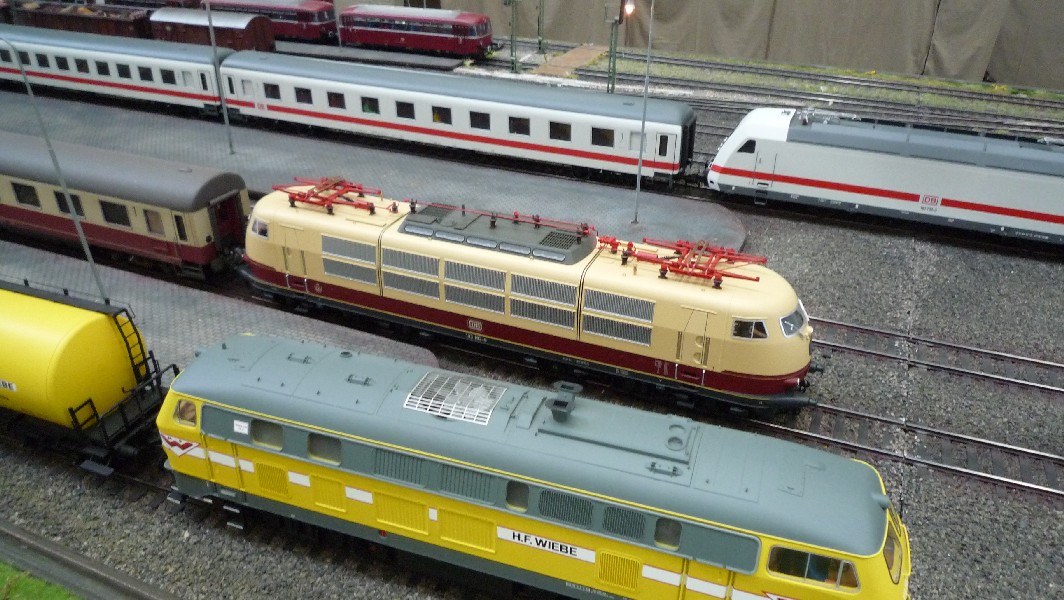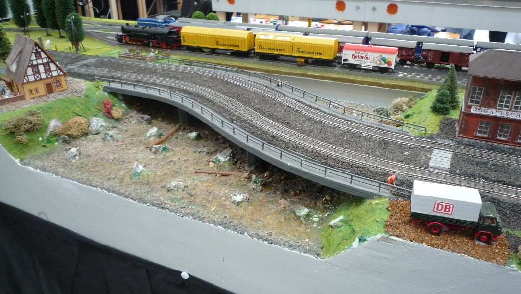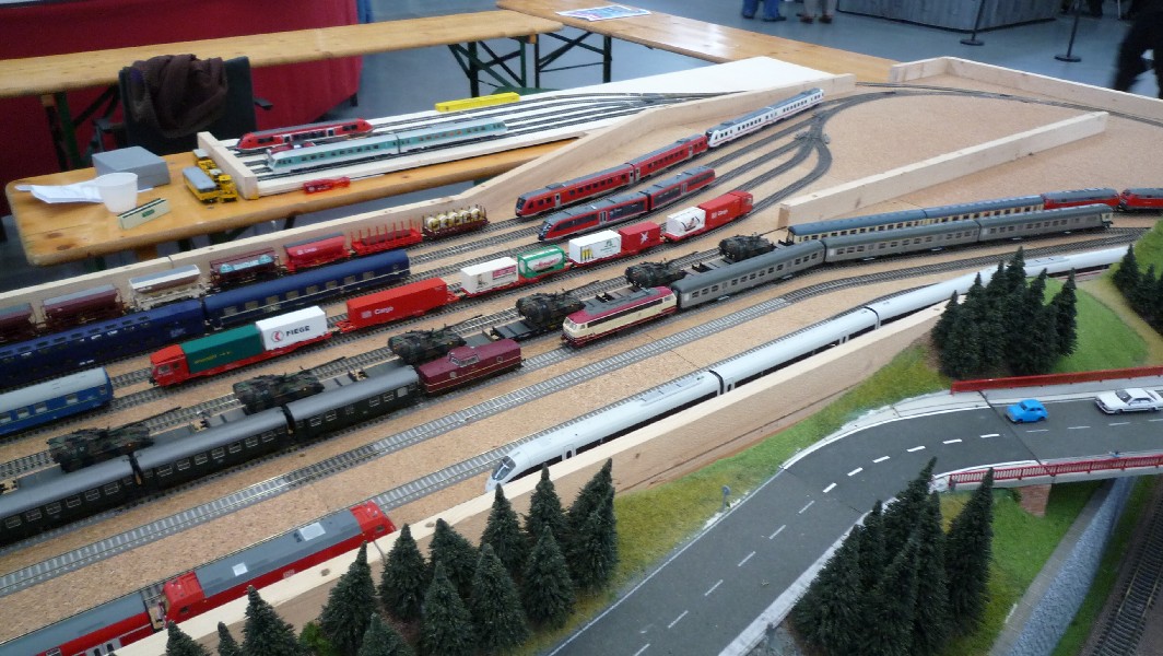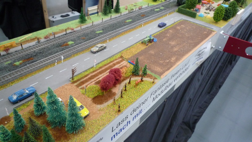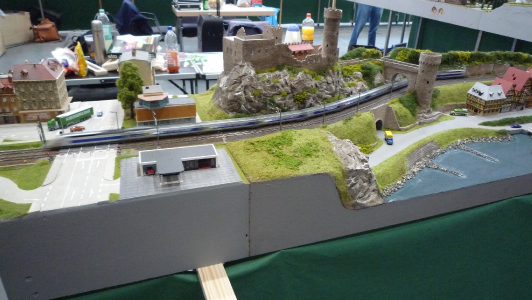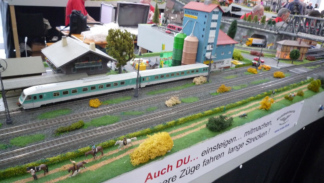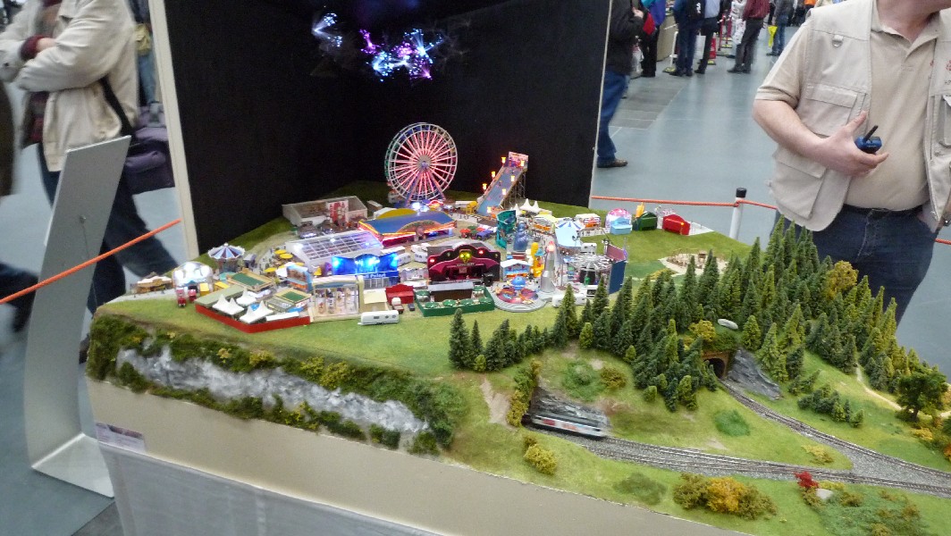 In diesem Abschnitt stelle ich so gut wie alle vertretenen Schausteller vor. Darunter fallen also Clubs oder Privatpersonen, die ihre Modellbahn- oder Modellbauanlagen vorstellen. Ich lasse die Bilder größtenteils unkommentiert, da ich über die jeweiligen Anlagen auch nicht mehr weiß, als man auf den Bildern sieht. Und warum sollte ich beschreiben, was man auf dem Bild sieht, wenn man es sich ja ansehen kann?