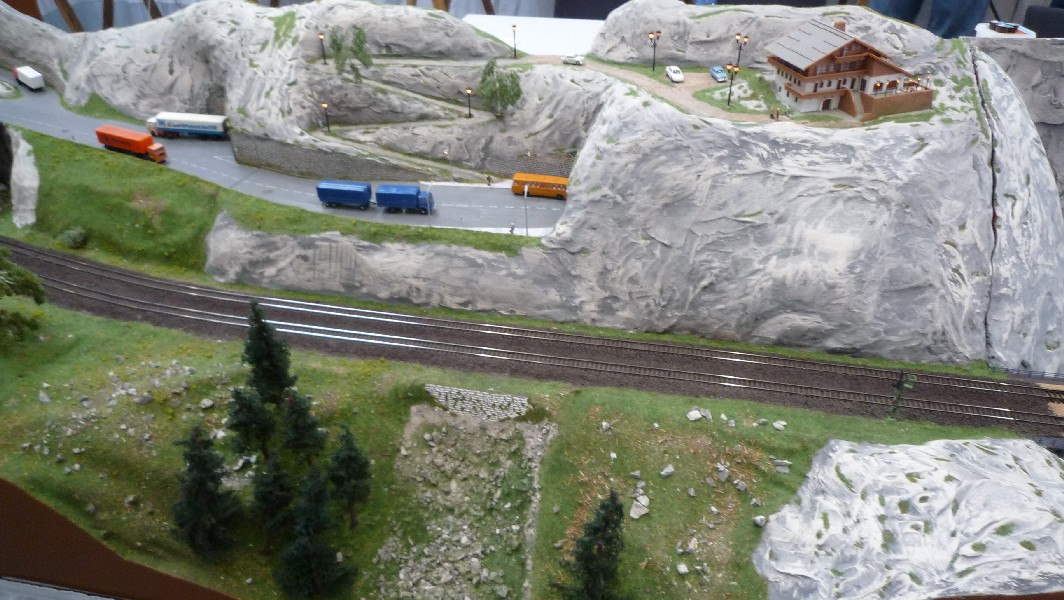 Eine typische Märklin Bahn mit S-Kurven, engen Bögen, aber trotzdem teilweise wirklich schön gestaltet.