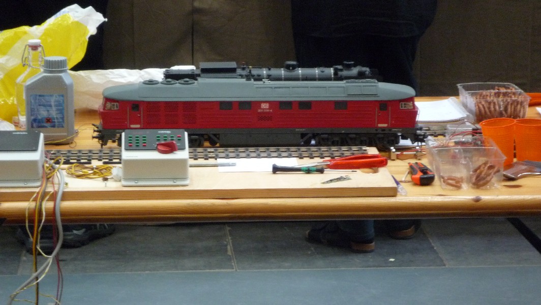 Der Flieger wird so wie ich es gesehen habe von ein paar Roco Mäusen gesteuert, also scheinen im Schlitten ein paar Digitaldecoder eingebaut worden sein, welche die Motore ansteuern.