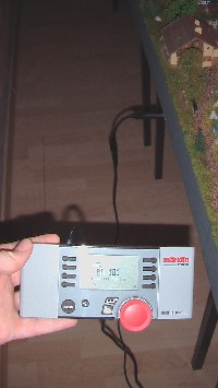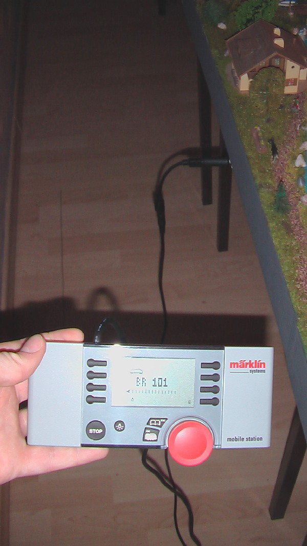 Da die Mobile Station bei Ebay sehr günstig zu haben ist und man diese an der ECoS direkt über ECoSlink ohne Trafo und Anschlussbox anschließen kann, entschloss ich mich, diese zu kaufen und als Handregler einzusetzen. Der einzige Nachteil ist das Kabel, welches natürlich nicht quer über die Anlage reicht, um auch von etwas weiter weg den Betrieb aufrecht zu erhalten.