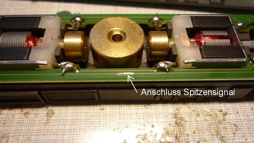 Dann muss etwas vom Lack abgeschliffen werden, so dass man hier die Litze für das Spitzensignal anlöten kann.