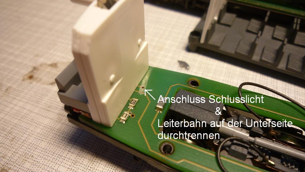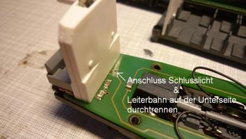 Wagen an. Dazu ist es erforderlich die Leiterbahnen zur zweiten Seite aufzutrennen und neue Lötpunkte zu setzen.