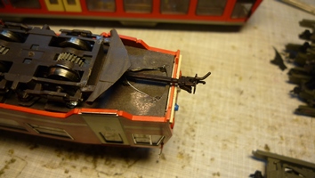 Leider hängt die Kupplung bei den Halling Triebwagen etwas nach unten. Dies kann man beheben, in dem man einen Drahtbügel in zwei
