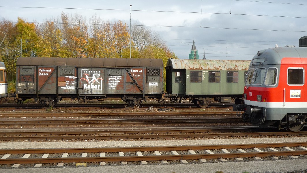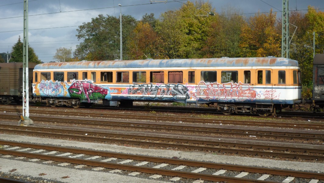 Auch ein alter Esslinger Triebwagen und verschrumpelte Wagen waren abgestellt.