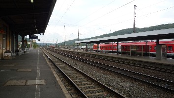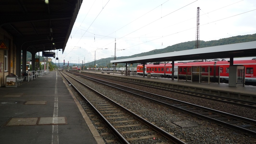 Wie man sieht ist der Bahnsteig zwischen Gleis 8 und 9 eher ein Behelfsbahnsteig. Hier halten auch nur selten Züge. Der Regionalverkehr wird ansonsten an den Gleisen 4 bis 7 abgewickelt.
