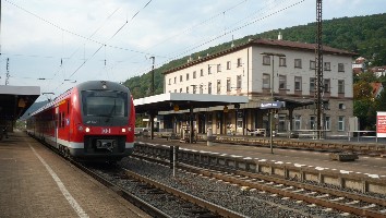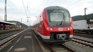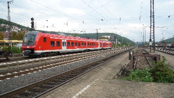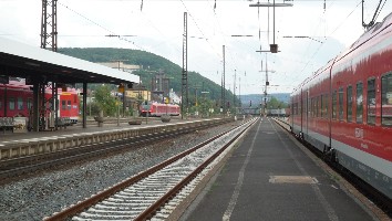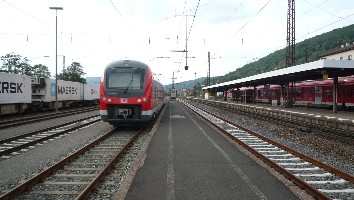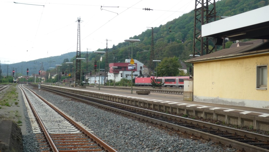 Gleich darauf folgte der umgeleitete RE aus Fulda nach Frankfurt. Er hat gerade in Gemünden Kopf gemacht und fährt als RE 4518 über Aschaffenburg und Hanau weiter.