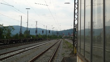 Über die Osterfeiertage 2011 konnte man einen interessanten Umleitungsverkehr auf der Main-Spessart-Bahn zwischen Hanau und Gemünden beobachten. Da die Kinzigtalbahn Hanau - Fulda wegen Bauarbeiten gesperrt ist, werden alle Züge über Flieden - Jossa - Gemünden - Aschaffenburg - Hanau umgeleitet. Die RE Züge Fulda - Frankfurt fahren dabei ab Flieden über Jossa, Burgsinn nach Gemünden, machen dort Kopf und fahren dann über Aschaffenburg nach Frankfurt. Die ICEs Berlin - Frankfurt - Mannheim - Basel / München sowie vereinzelte ICEs aus Dresden fahren dabei zunächst über die SFS Hannover - Würzburg von Fulda bis zur Überleitstelle Burgsinn, wechseln dort auf die Strecke Flieden - Gemünden, auf der sie bis kurz vor Gemünden geführt werden. In Gemünden gibt es ein Gleisdreieck, was es ermöglicht von Norden Richtung Westen abzubiegen, ohne in Gemünden Kopf machen zu müssen. Diese 90° Kurve befahren die ICEs schließlich, um über Aschaffenburg und Hanau weiter nach Frankfurt zu fahren.