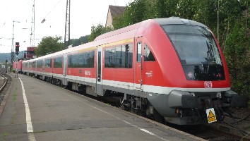 Ein RegioShuttle der EB fährt nach Schweinfurt Stadt über Hammelburg, Bad Kissingen, Ebenhausen und Schweinfurt Hbf..