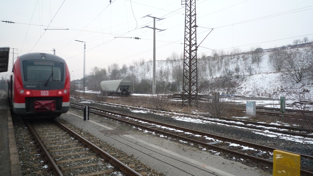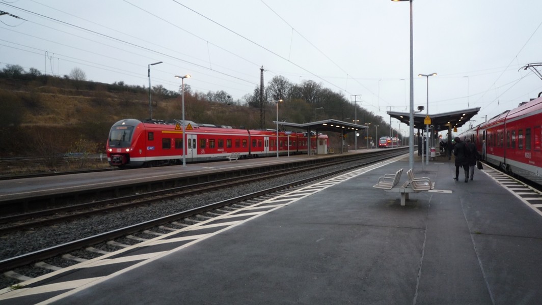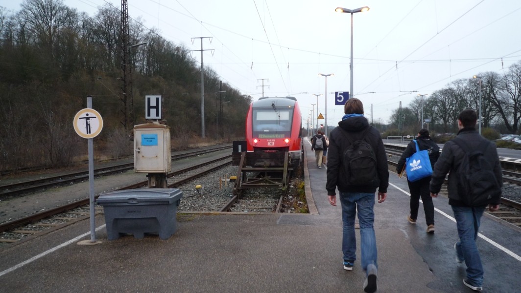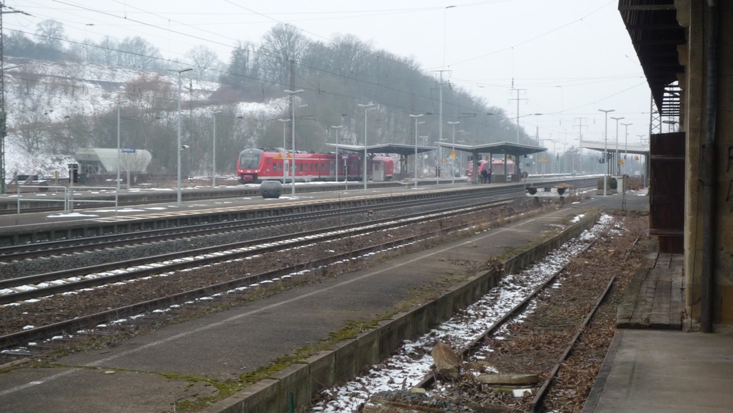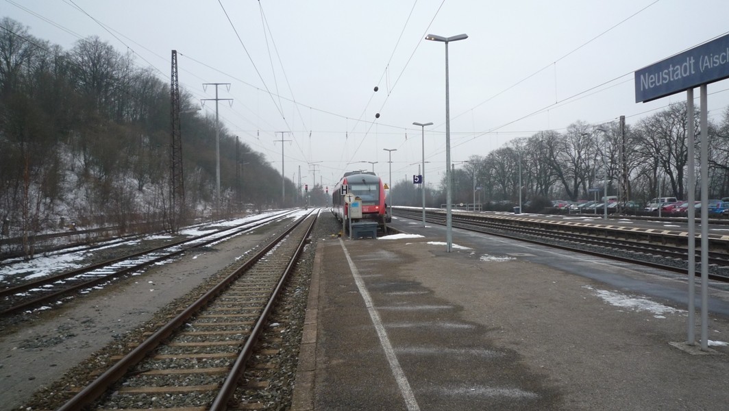 Die RB nach Nürnberg steht bereit. Seit geraumer Zeit wurden die Fahrzeiten um eine halbe Stunde verschoben, so dass Neustadt (Aisch)