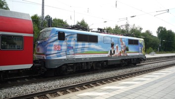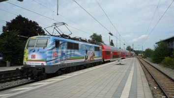 Gegen 12:38 Uhr ist der EC "Wörthersee" mit dem 12 Stunden und 17 Minuten langen Zuglauf Klagenfurt - Dortmund in Prien angekommen. U.a. wird