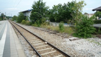 Wie man sieht war neben dem Gleis 3 früher noch ein Gleis vorhanden. Es existieren nun nur noch die Schwellen.