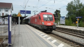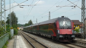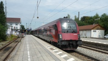 Um 11:55 Uhr passiert schließlich der RJ 262 aus Wien nach München mit etwa 20 Minuten Verspätung den Bahnhof Prien.