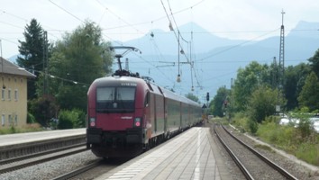 österreichische Bahnstrecke, sieht man auch ÖBB ICs wie diesen IC 865 von Innsbruck nach Wien durch Prien fahren, der aber kein einziges