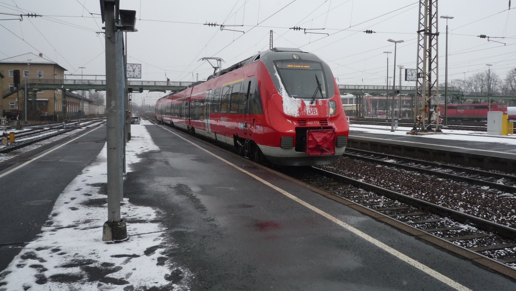 Heute bin ich auch das erste mal Talent 2 gefahren. Der Vierteiler nach Würzburg kommt etwas verschneit um 12:58 Uhr in Schweinfurt an.