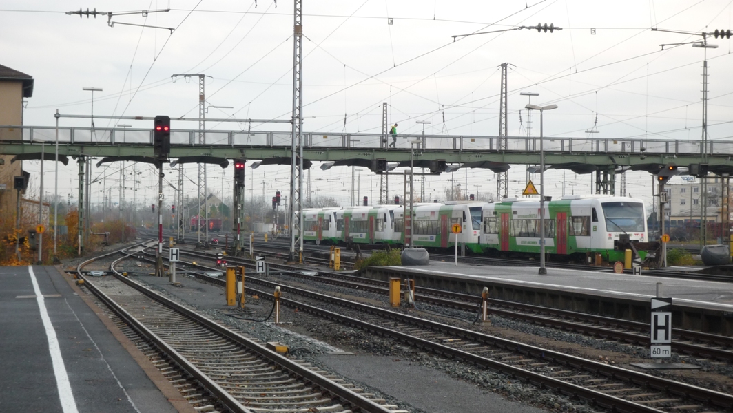 Am 9.11.2010 konnte ich diese Bilder machen. BR 612 fährt von Gleis 6 Richtung Bamberg ab. Alle 2 Stunden verkehrt diese