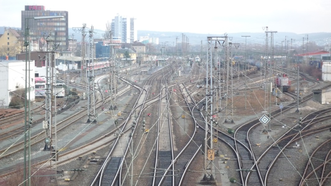 ErfurterBahn Richtung Ebenhausen genutzt. Gleis 6 ist das Durchfahrgleis Richtung Würzburg, Gleis 7 das Durchfahrgleis