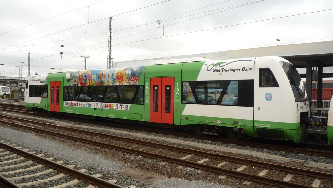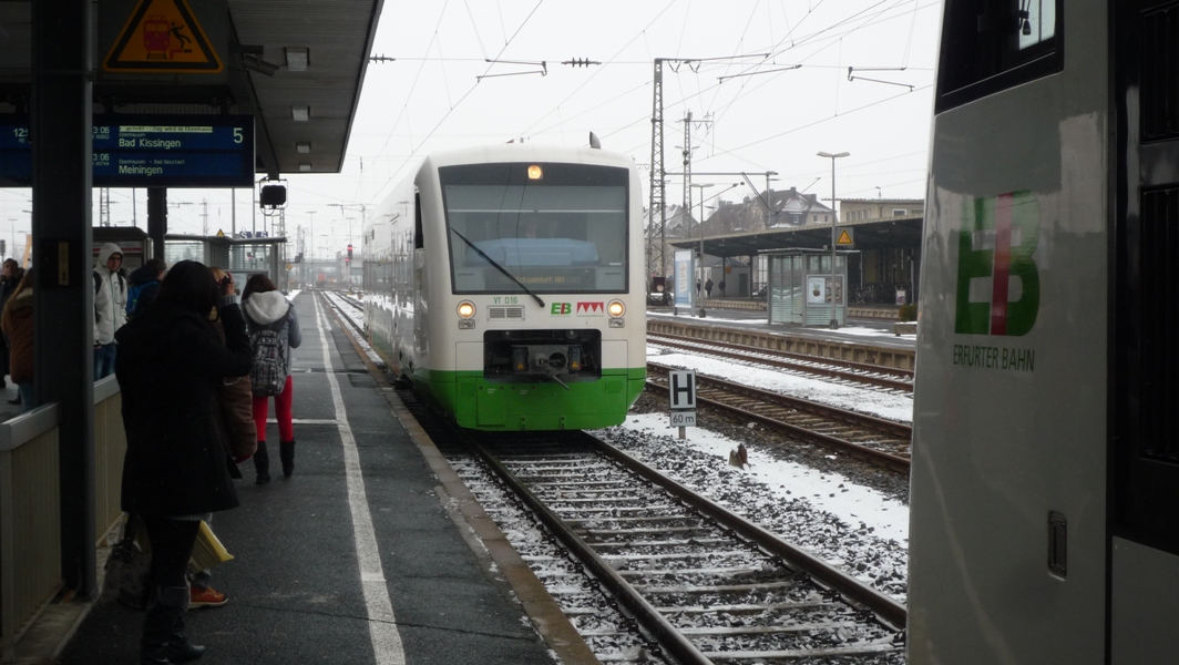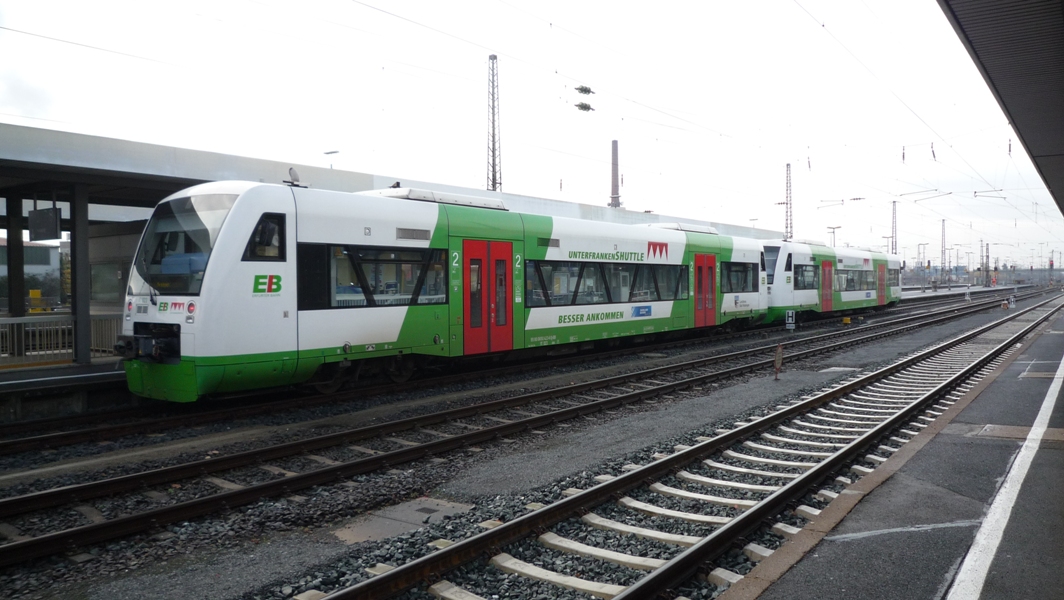 stehenden Triebwagen an, so dass wieder eine Doppeltraktion nach Meiningen/Bad Kissingen bereit steht.