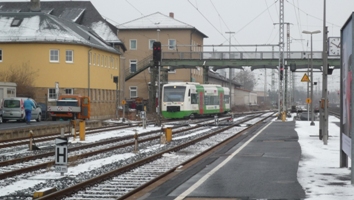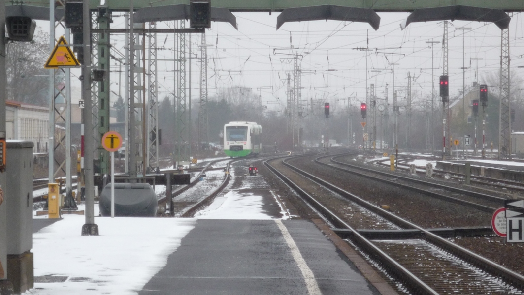 Die EB 80792 aus Schweinfurt Stadt kommt daher nicht mehr auf Gleis 8 an, sondern auf Gleis 3.