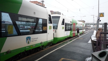 ... der hintere Triebwagen bleibt am Bahnsteig stehen und fährt um 13:06 zurück nach Meiningen.