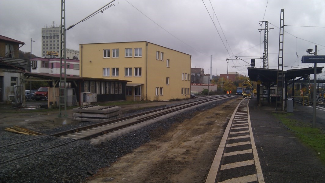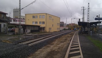 August 2014, das neue Überholgleis auf Höhe des Haltepunkts Würzburg Zell ist im Bau. Später folgt entlang der