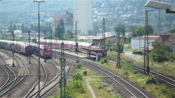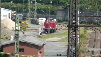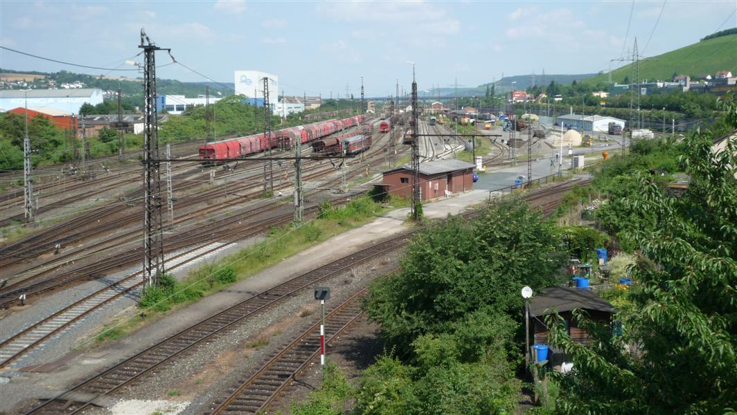 Würzburger Rangierbahnhofs abgestellt. Die Lok zu fotografieren ist aber nicht leicht. Vom Bahnhof Zell aus befinden sich meistens