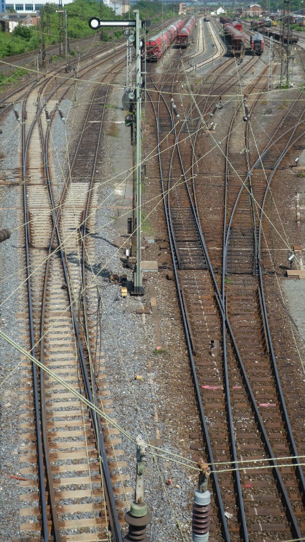Die Einfahrgruppe des Würzburger Güterbahnhofs.