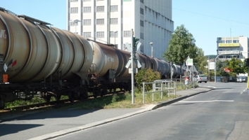 Am 7. September 2012 war mal wieder der Kesselwagenzug mit BR 203 der RTS vom Shell-Werk zum Güterbahnhof unterwegs. Dazu muss die vierspurige