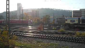 abgestellte Güterzüge im Blickfeld. Am 31. August 2011 hatte ich früh endlich die Gelegenheit die Lok abzulichten. Zwar sind immer noch