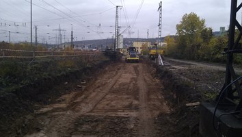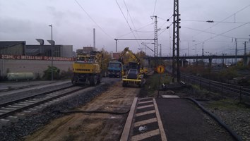 Dort wo der Kipper steht wird die neue Weiche eingebaut.