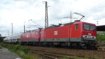 Die Züge fahren immer in Doppeltraktion, wobei diesmal eine ex BR 143 (nun MEG 602) und eine ex BR 156 den Zug nach Regensburg Ost bespannt hat.