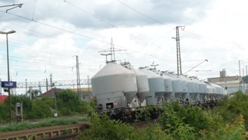 Startbahnhof war das Zementwerk der CEMEX OstZement GmbH in Rüdersdorf bei Berlin. Zurück nach Berlin fährt der leere Zug über die