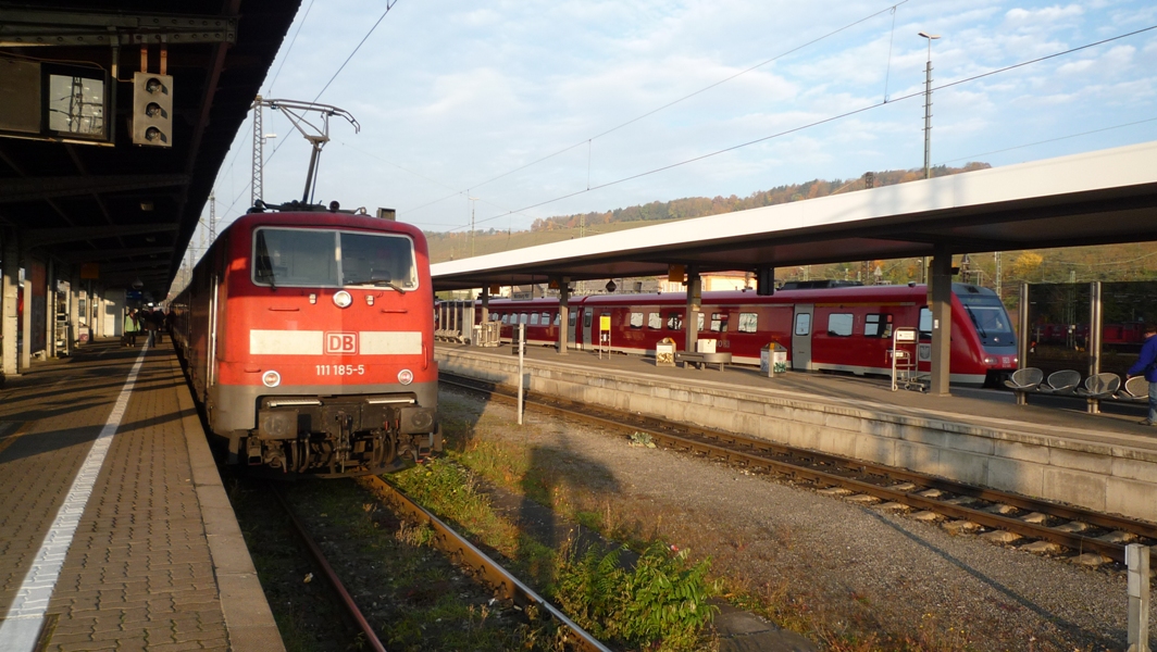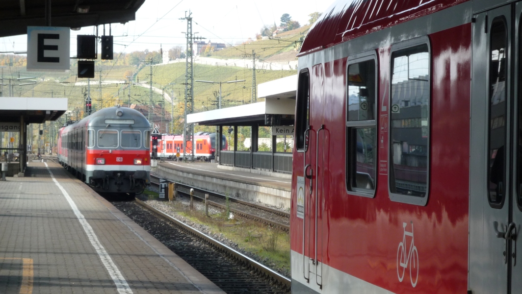Mein Zug steht schon lange bereit... Bereits um 07:22 Uhr kam RE 4932 aus Stuttgart auf Gleis 3 an, rangierte dann auf Gleis 4 und steht nun als RE 4935 zurück nach Stuttgart bereit (Abfahrt 08:37 Uhr).