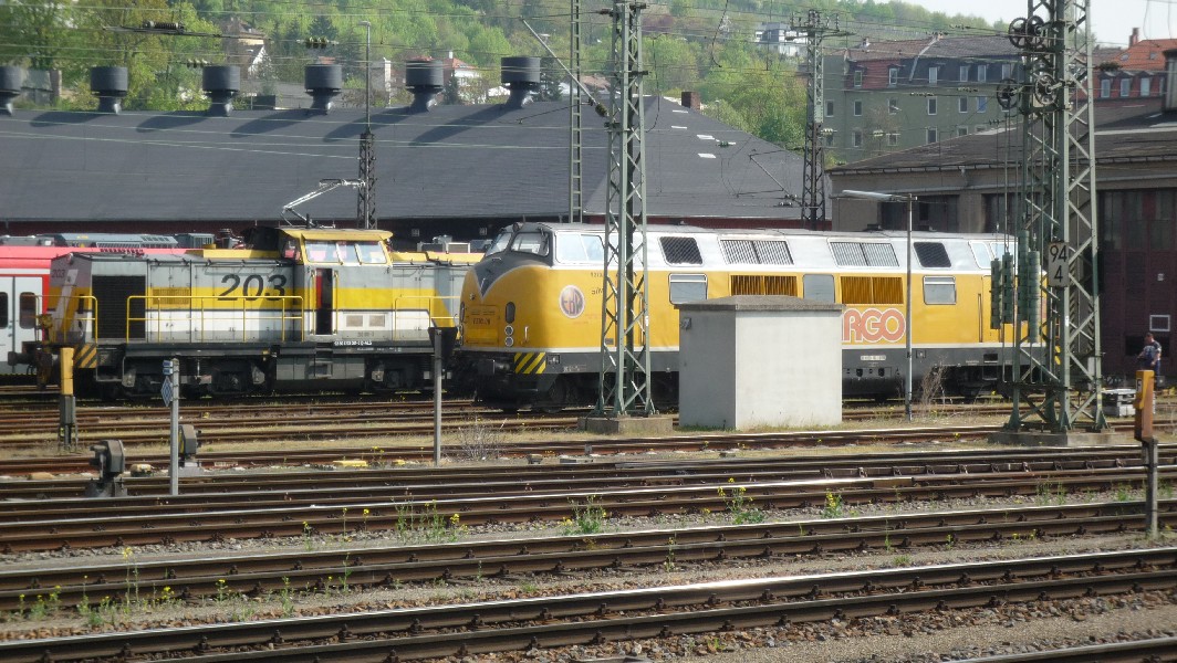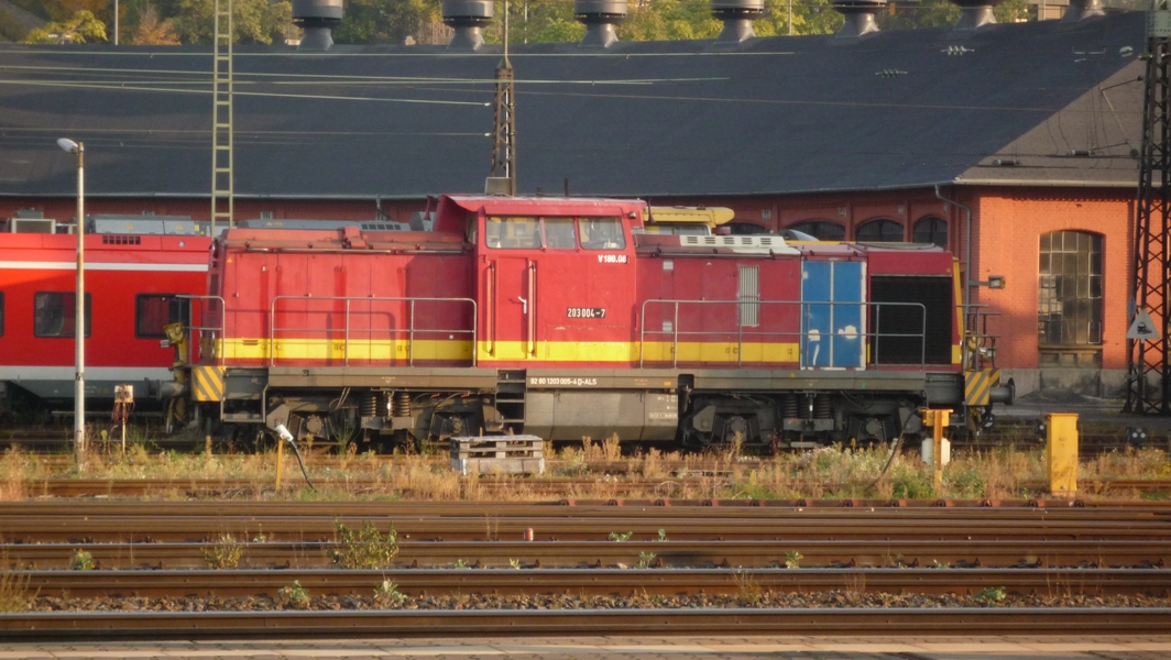Eine Diesellok BR 203. Für welche Bahngesellschaft die Lok fährt weiß ich leider nicht. Ich habe die Lok zum ersten mal gesehen.