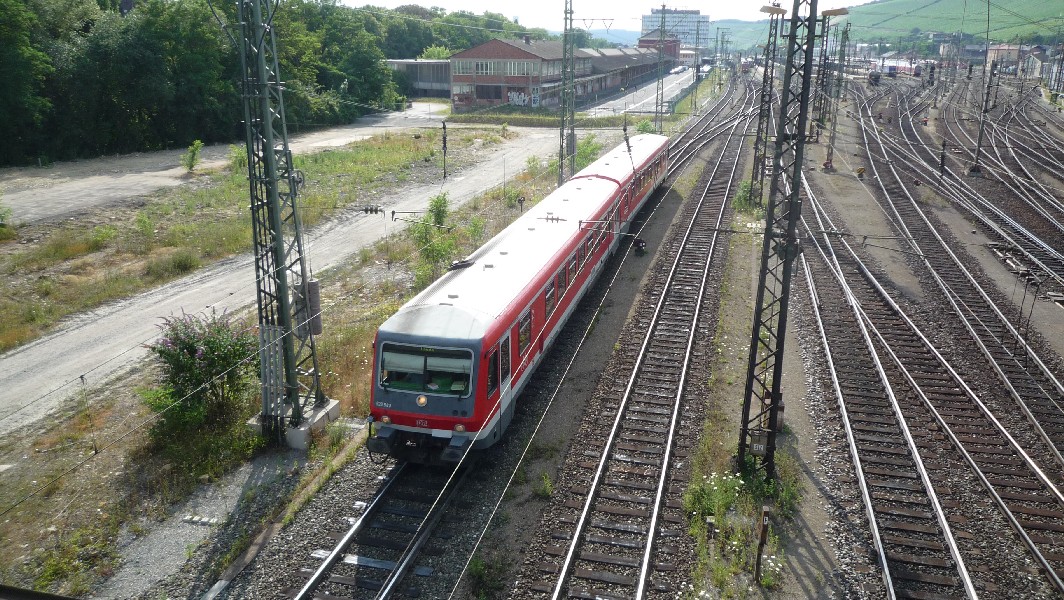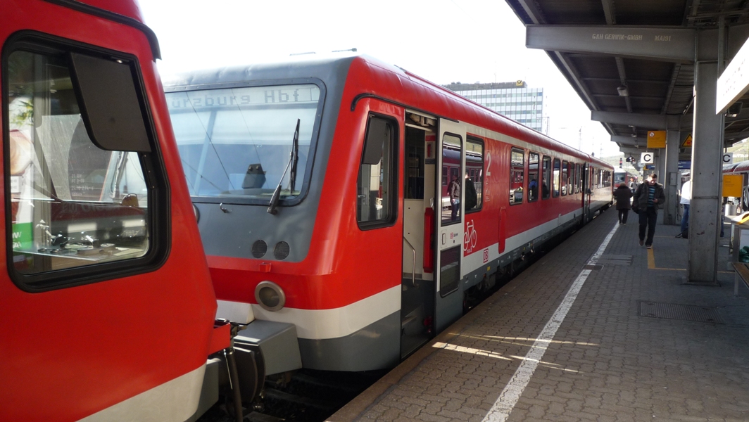 Warum ich aber eigentlich noch gewartet habe ist die Sache mit der 628er Doppeltraktion, die in Würzburg geteilt wird. Wie ich ja einige Bilder zuvor geschrieben habe, wird eine in Lauda gebildete Doppeltraktion BR 628 (RB 33526) in Würzburg aufgelöst. Während der eine Zugteil zurück nach Crailsheim fährt, verbleibt der andere Zugteil in Würzburg und fährt um 17:33 Uhr als RB 33503 zurück nach Lauda.