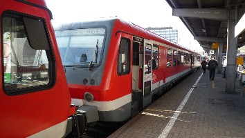 Dahinter steht schon BR 628 als RB 33521 nach Bad Mergentheim bereit (Abfahrt 09:11 Uhr).