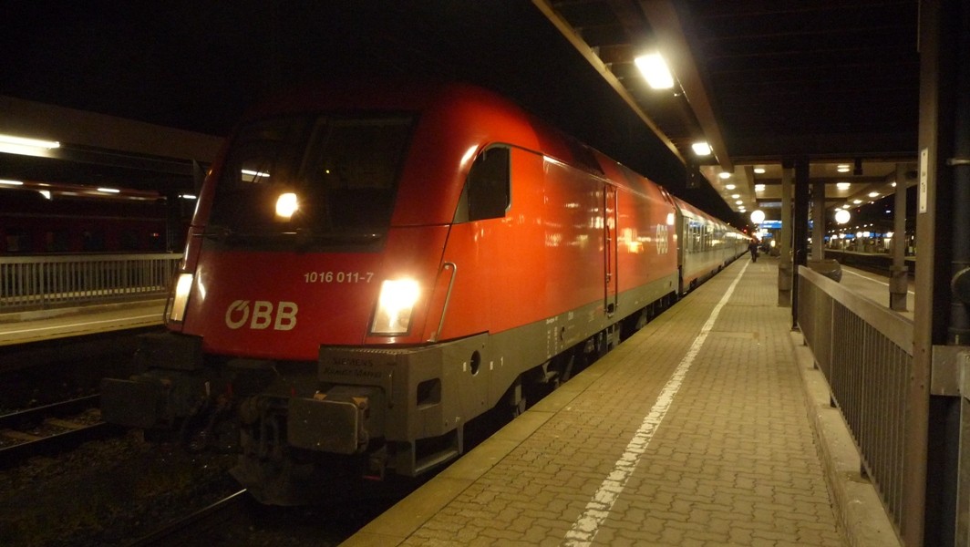 Mit 32 Minuten Verspätung fährt am 17. Juni 2013 der EN 490 nach Hamburg zusammen mit EN 420 nach Köln um 02:43 in Würzburg ab. Beide