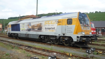 Am 20. August stand die Voith Maxima der SGL mit einem Werbeaufdruck in Würzburg auf dem Abstellgleis.