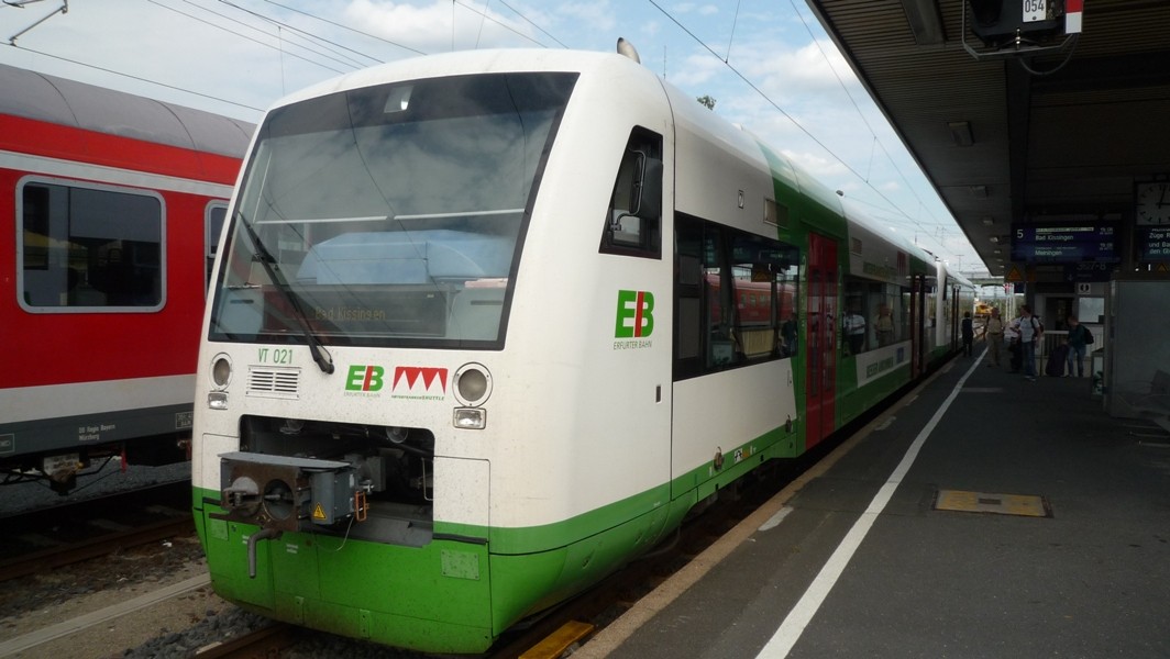 In Kissingen haben wir nun gut 35 Minuten Aufenthalt, bis der Triebwagen aus Schweinfurt Stadt in Kissingen angekommen ist und nach einer kurzen Wendezeit weiter nach Gemünden fährt.