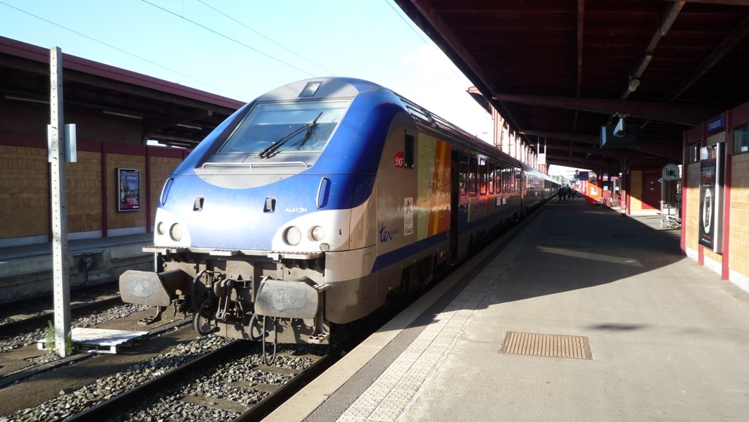 und selten auch Walfische der SNCF zwischen Strasbourg und Offenburg im Stundentakt mit Taktlücken und Verstärkerzügen.